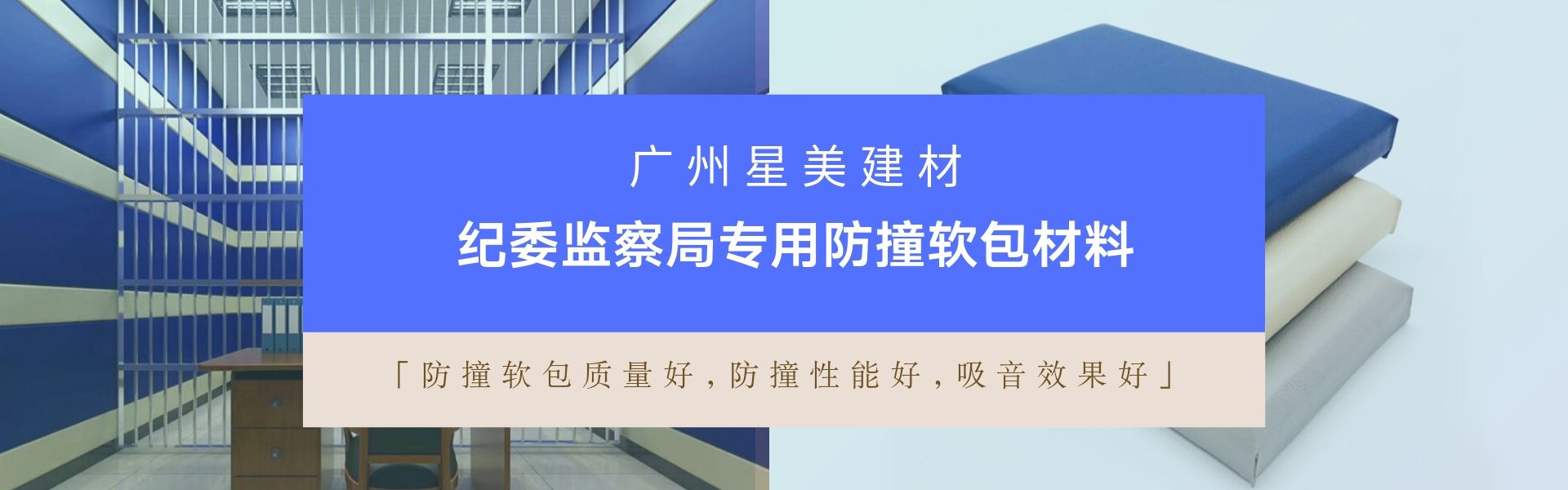 廣州星美建材專業研發生產銷售墻面防撞軟包材料,用于紀檢委談話室、詢問室、執法辦案區、公安局審訊室、派出所辦案區、檢察院訊問室、看守所…